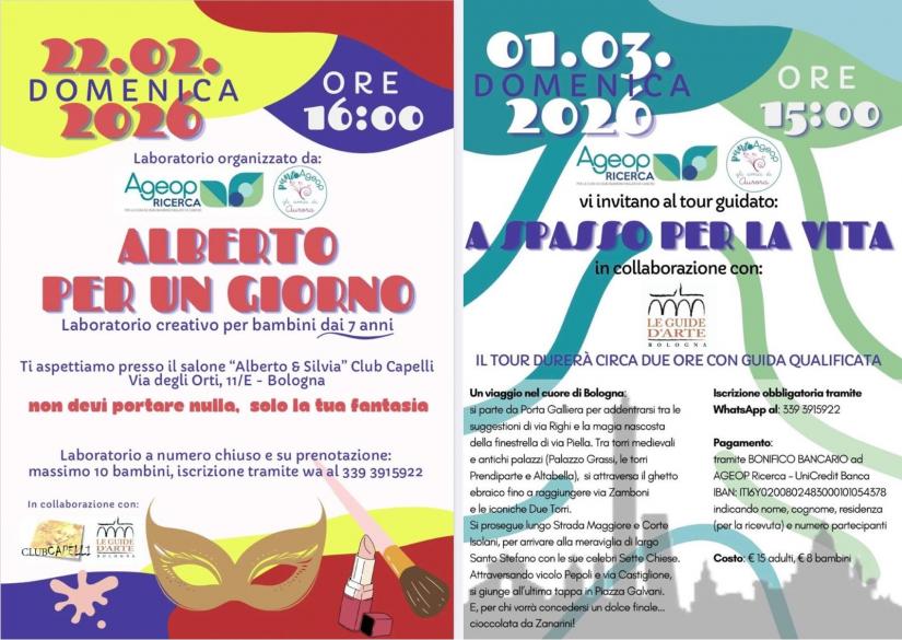 Le Guide d'Arte - Club Capelli - AGEOP ricerca e Punto Ageop Gli amici di Aurora presentano LABORATORIO E VISITA SOLIDALE A BOLOGNA PER LA RICERCA PEDIATRICA